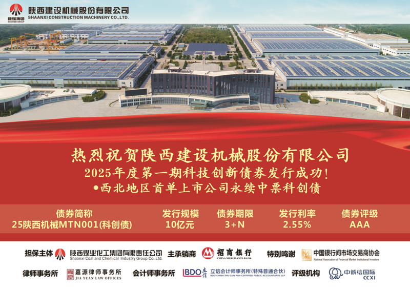 6月26日,陕西建设机械股份有限公司(以下简称“建设机械”)成功发行2025年度第一期科技创新债券,发行规模10亿元,票面利率2.55%,发行期限3+N年,债项评级AAA。 本次中期票据简称“25陕西机械MTN001(科创债)”,由陕煤集团提供连带责任保证担保,招商银行担任独家承销商。建设机械充分借助中国银行间市场交易商协会大力推广债券市场“科创板”的有利政策,成功发行西北首单上市公司科技创新债券,也是陕西省属企业首次发行次级永续中期票据。作为陕煤集团装备制造板块核心企业,建设机械自2004年在上海证券交易所挂牌上市(股票代码:...