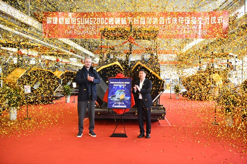 凯时网站股份举办SUM6200C摊铺机下线暨海外合作伙伴设备交付仪式